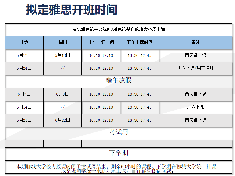 如本课程修读结束后六个月内参加雅思官方考试,总分达不到6.5分可免费参与实战段重修;重修课程可跟读聊城大学校内新开班,或在新航道济南校区上课。