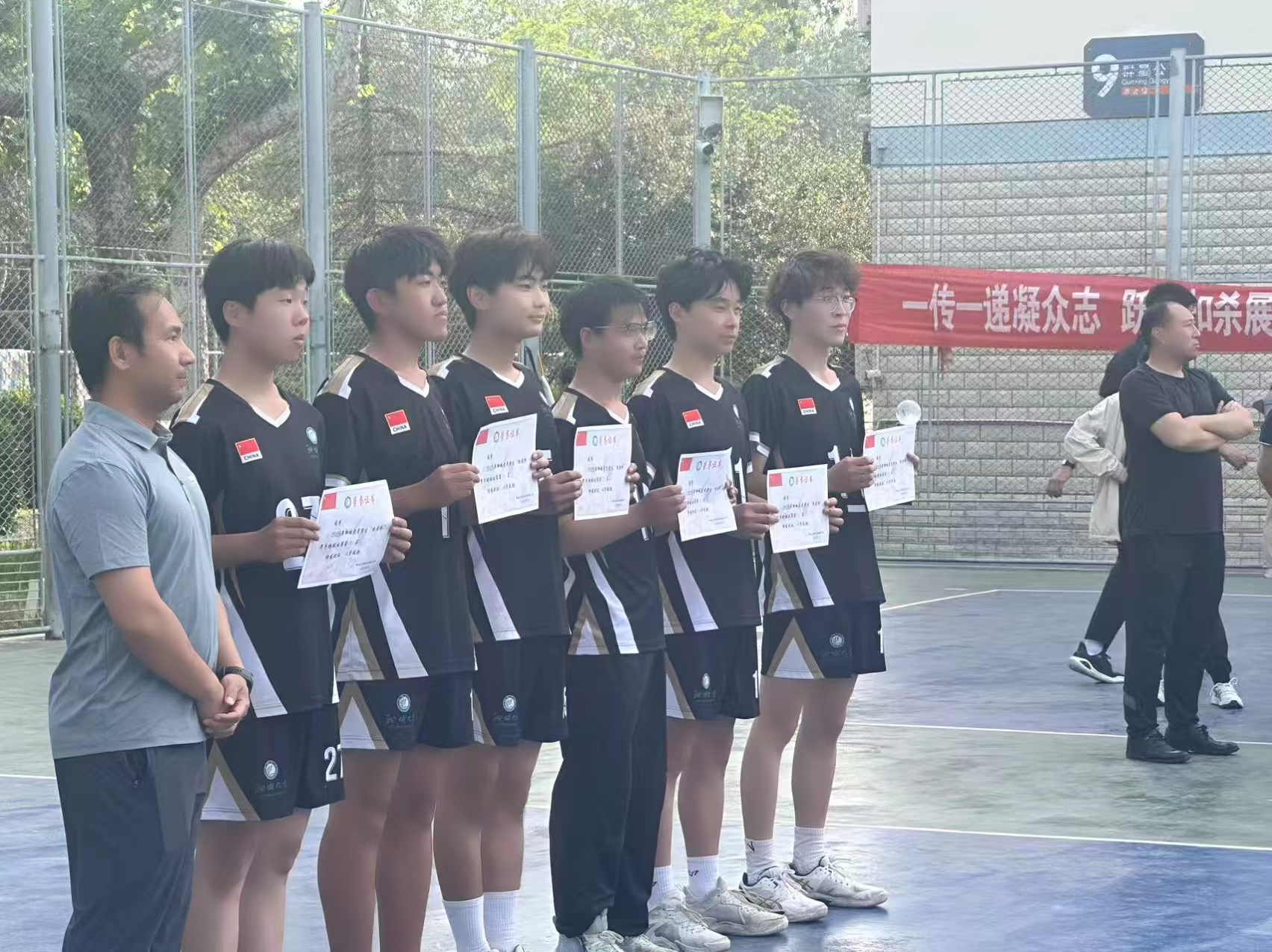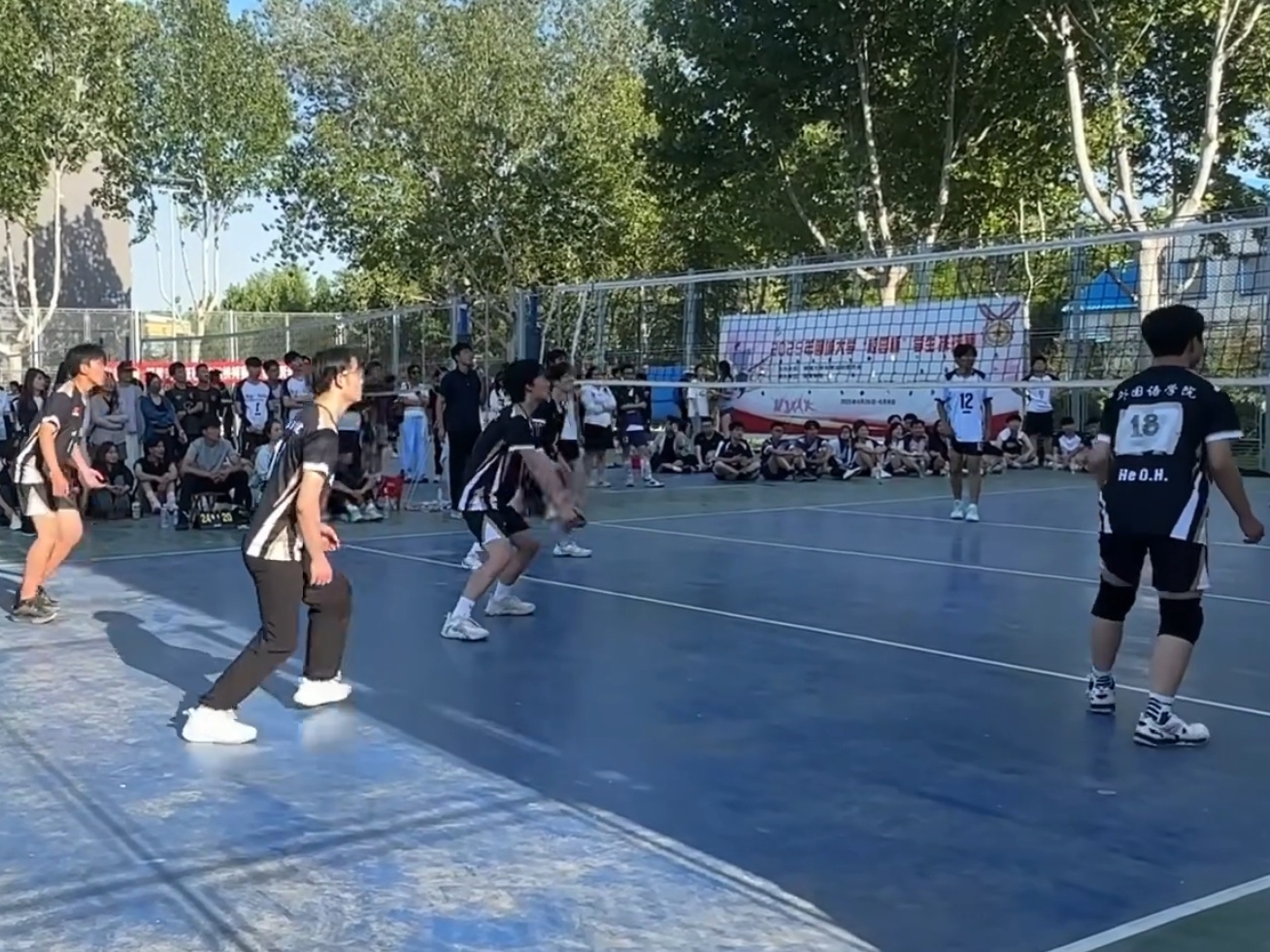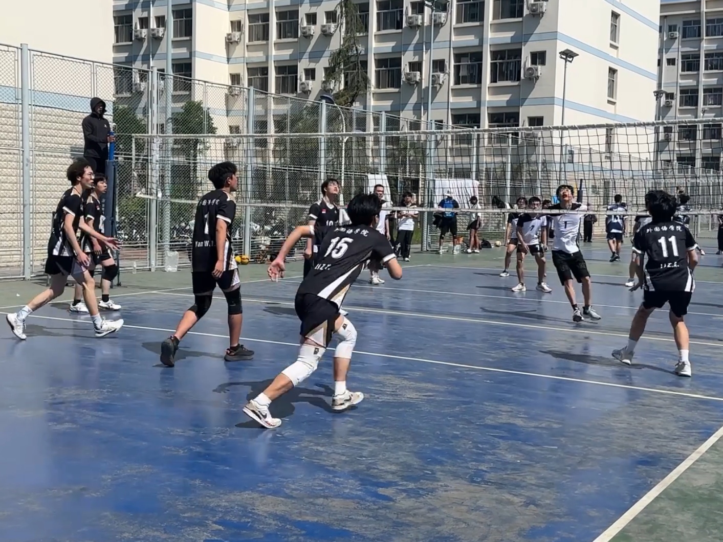 赛前,学院男排队长凭借丰富的赛场经验,在场边冷静分析局势,以精准的战术指导助力男排队员们。男排队员们身着统一队服,眼神坚定,以饱满的斗志迎接每一场挑战,用实际行动诠释着“永不言败、奋勇争先”的体育精神。