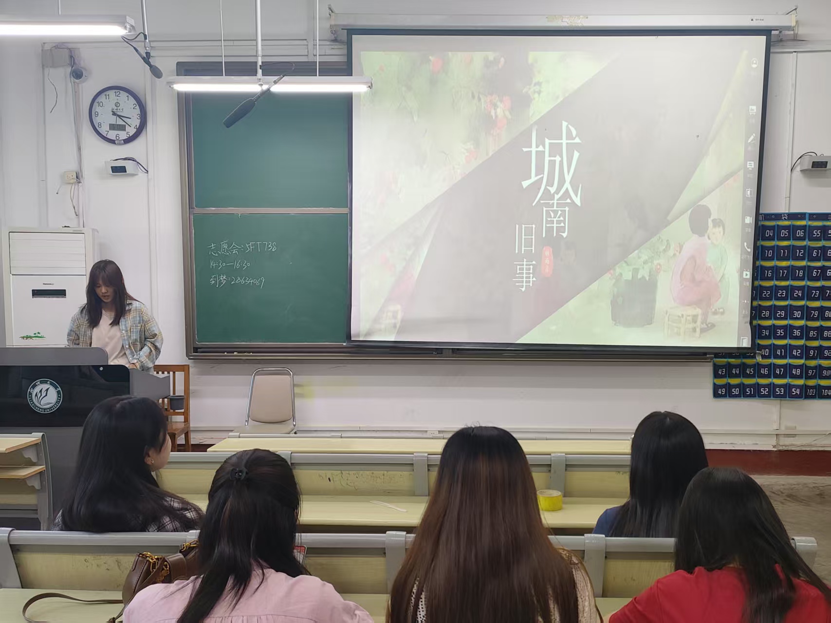 王雪借助精心制作的PPT,通过对比书中人物的人生抉择与当代青年的现实困境,引发大家对理想与现实的思考;张晓晗身着鄂温克族特色服饰亮相,配合悠扬的民族音乐,生动讲述了《额尔古纳河右岸》中鄂温克人的生活故事,将听众带入神秘的大兴安岭;姚星辉采用情景模拟的形式,与搭档重现书中经典对话场景,让大家直观感受到故事中正义与偏见的冲突;栗亚楠结合自己的英文翻译学习经历,双语解读《茶花女》,展现了文学作品在不同语言中的独特魅力;韩婕则手持老照片,深情讲述《城南旧事》中的温情片段,勾起大家对童年的美好回忆。在互动环节,学生们纷纷举手提问,围绕书籍主题、分享形式等展开热烈讨论,现场笑声与掌声不断。