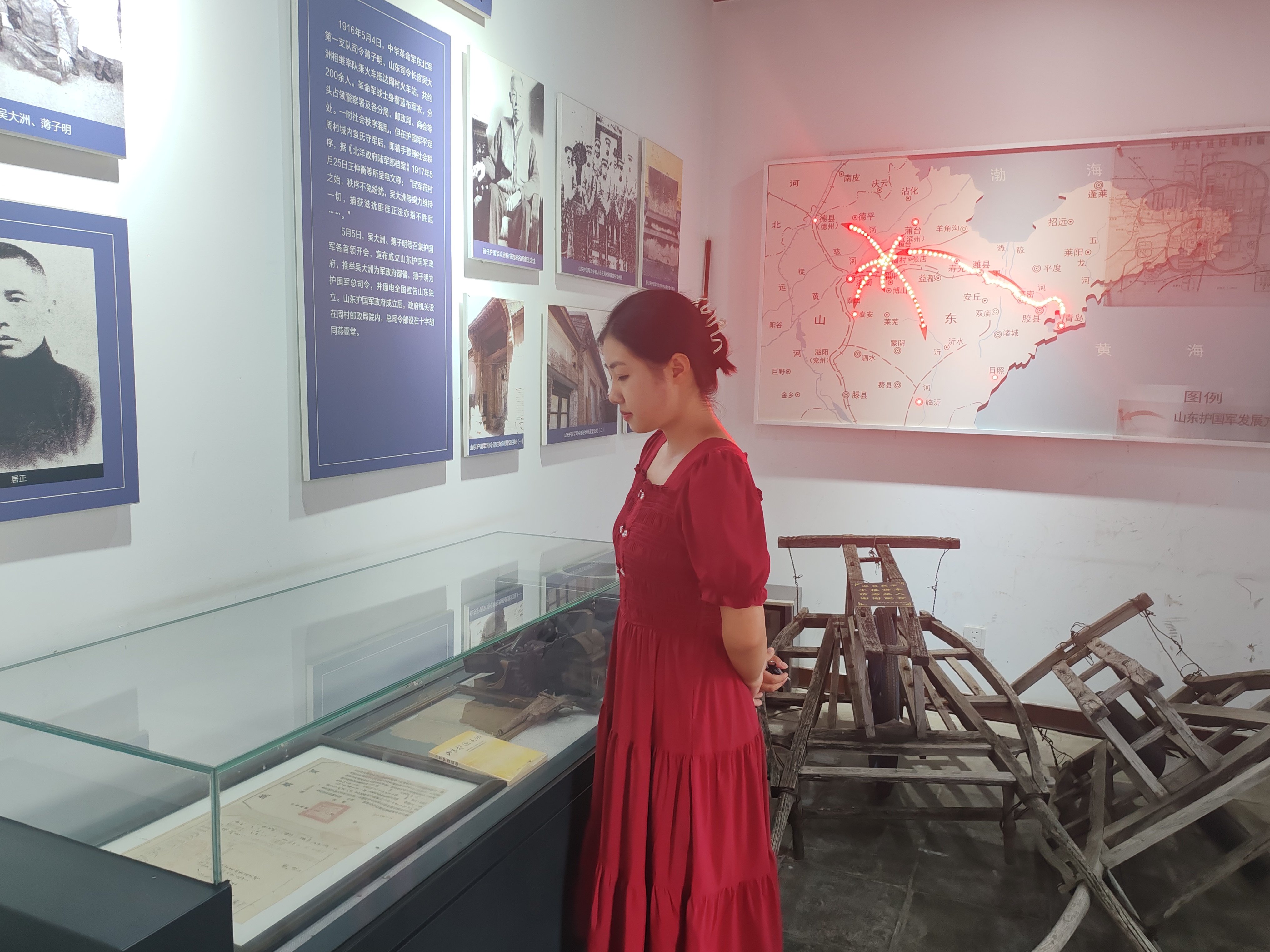 活动中,由来自淄博的服务队成员商冰洁担任讲解员,生动讲述了黑铁山抗日武装起义的壮烈历程与英雄事迹,其他成员全程认真聆听学习。黑铁山作为重要的革命圣地,承载着厚重的历史记忆。纪念馆内陈列着大量珍贵的历史文物和史料,真实还原了那段烽火岁月。置身其中,浓厚的革命气息扑面而来,使线上线下参与者都能深刻感悟那段艰苦卓绝的抗战历史,更加直观地理解红色文化的深刻内涵。