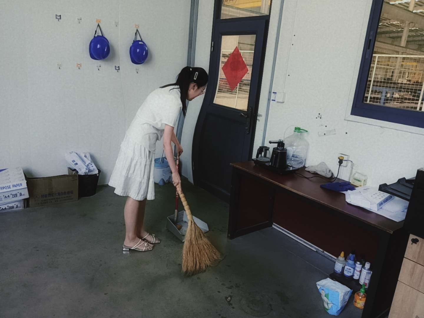 活动中,实践队学生分工明确、行动有序。在社区办公区域,学生认真操作打印机,保障办公文件顺利输出;手持抹布仔细擦拭桌面,让办公环境焕然一新;对堆积文件进行分类整理,规整入档,提升办公资料管理效率 。同时,学生拿起扫帚、簸箕,对公共区域地面垃圾、杂物进行清扫,不放过角落污渍,以实际行动为社区清洁添力。此外,学生还专注于办公电脑前,协助处理数据、文档等工作,助力社区日常事务有序推进。