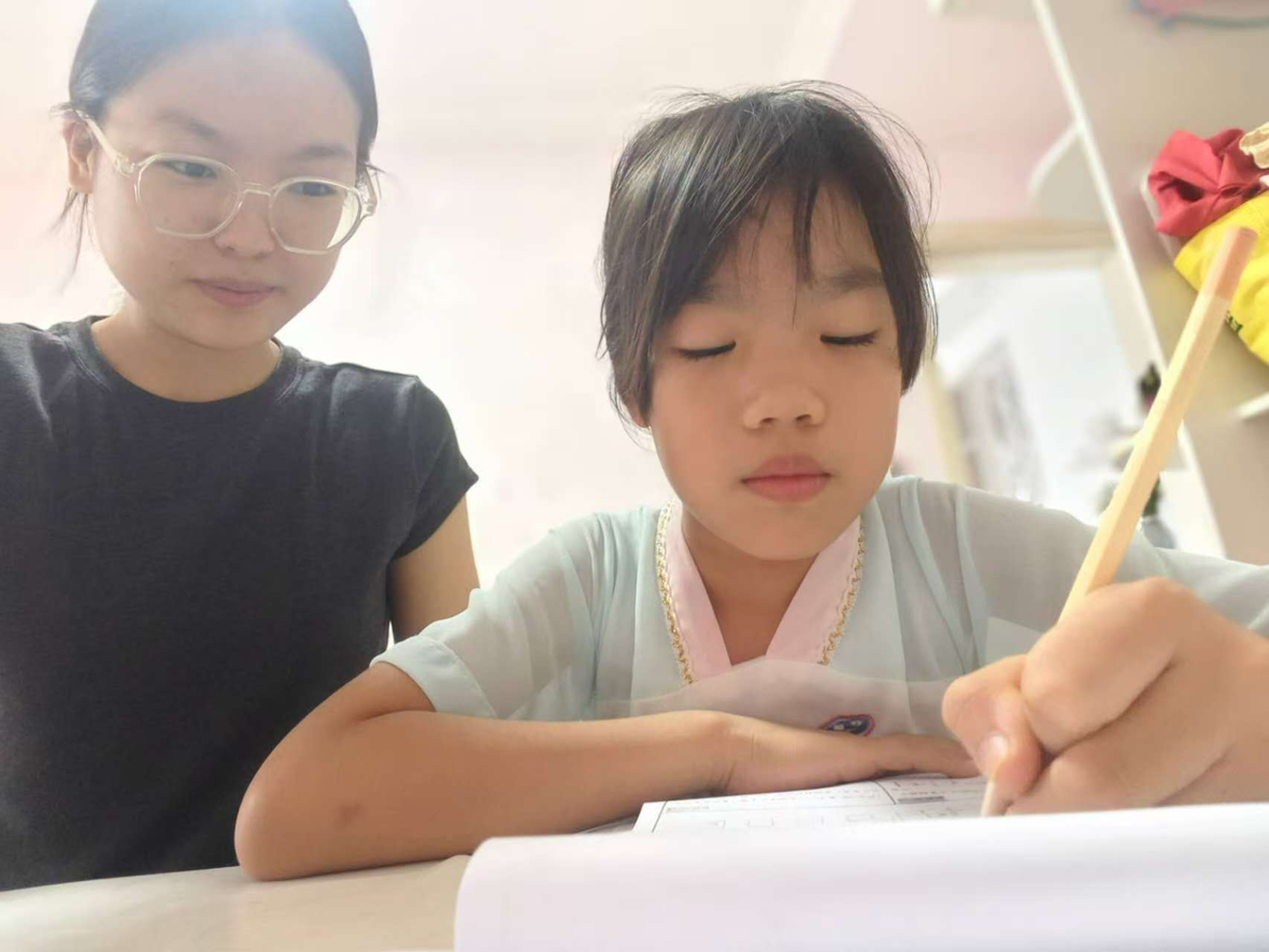 为解决暑假中小学生家庭“看护难,辅导难”问题,切实减少学生课业负担,艺启新邻队于7月12日开展了“青春引擎驱动!山东社区焕新·课后辅导+科学普及双行线”社会实践活动,志愿者黄子慧来到了山东省临沂市郯城县万开世纪城对中小学生进行暑假作业辅导。