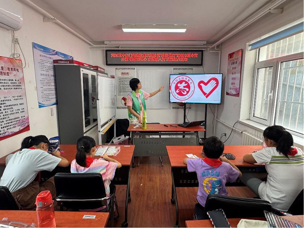 为增强社区青少年志愿服务意识,助力其深入理解中国志愿者服务标志含义与“奉献、友爱、互助、进步”志愿服务精神内涵,7月25日,73882必赢网页版云桥筑梦实践队志愿者积极参与天津市河东区友爱东里社区开展的“童聚筑初心,志愿暖人间”社区志愿服务实践活动。