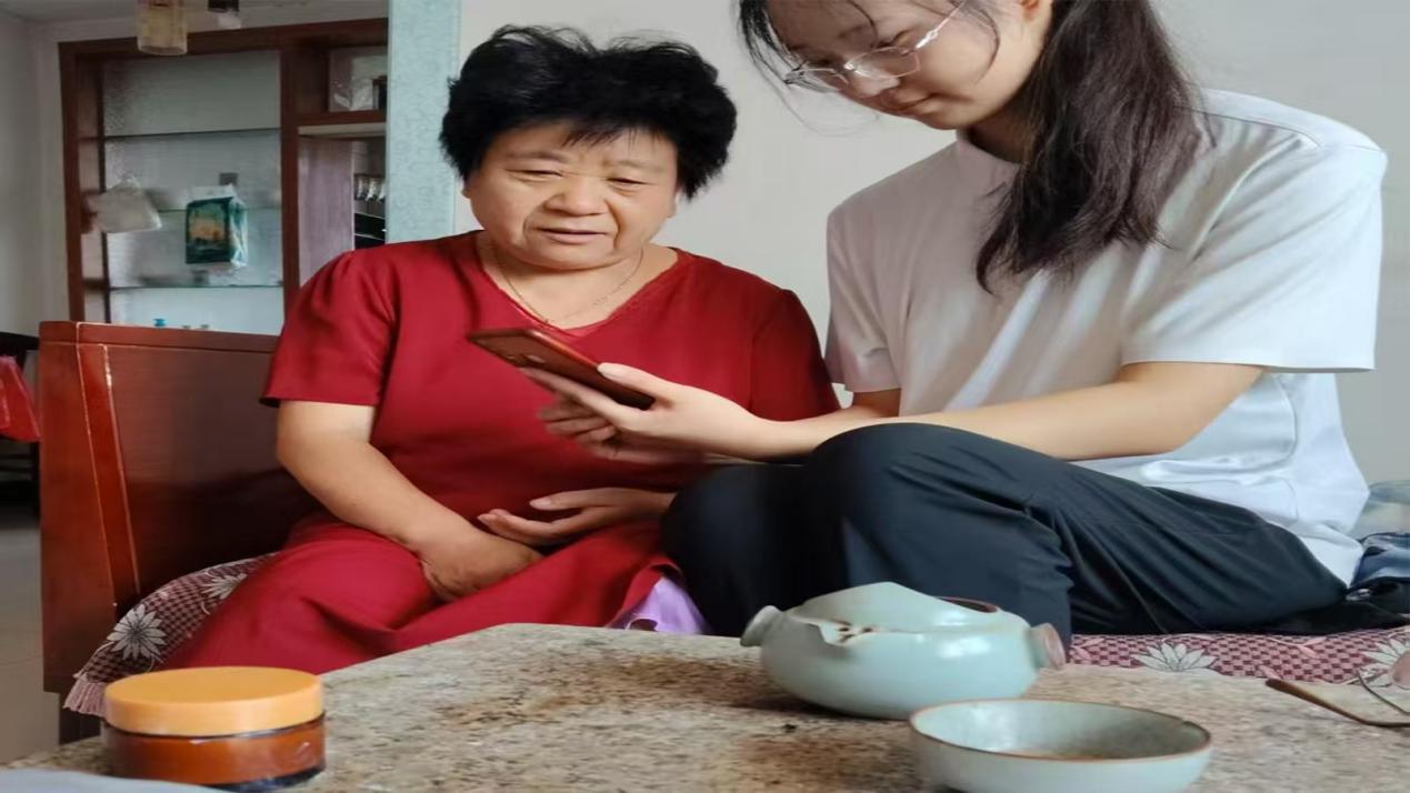 午后,队员前往空巢老人家中。在独居的一位老奶奶家,队员认真倾听老人家的故事,并为老人演示手机短视频拍摄、线上就医挂号,帮助老人适应数字生活。