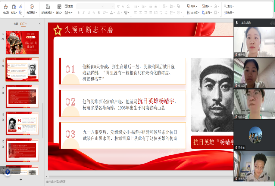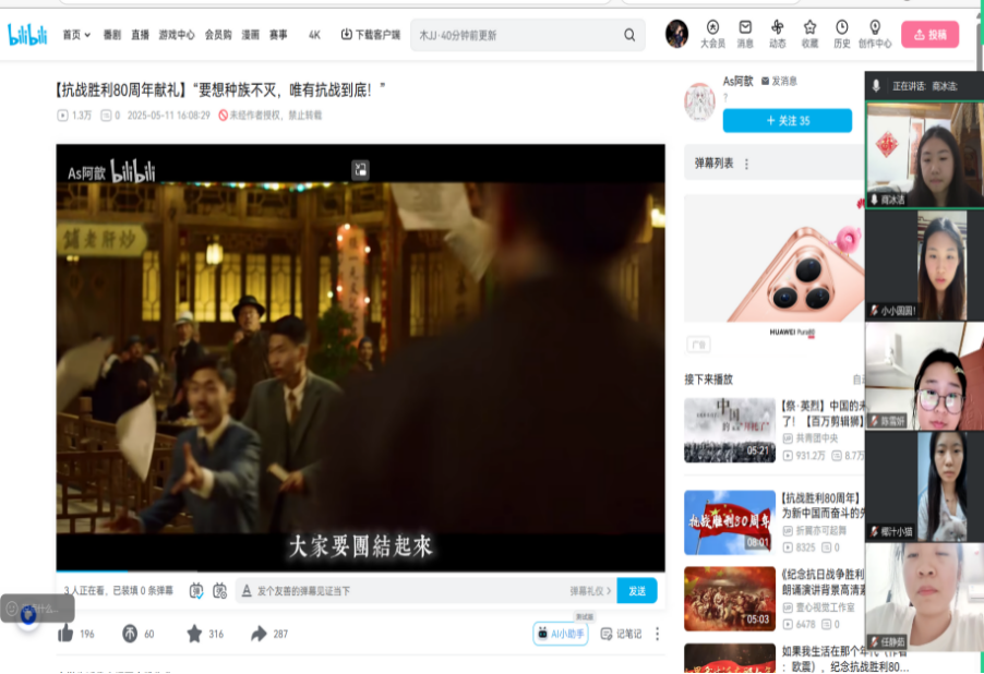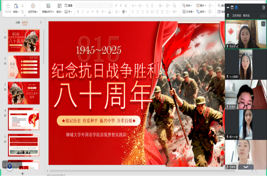 为深切缅怀抗战英烈,重温烽火岁月,激励青年一代传承红色血脉,勇担时代使命,8月5日,73882必赢网页版语筑梦想实践队于线上举行“铭记历史,吾辈自强”纪念抗日战争胜利80周年主题学习会。