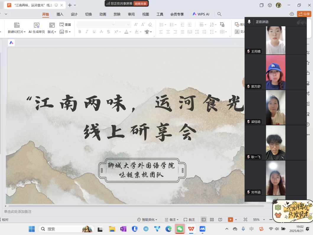 此次线上研享会的成功举办,不仅拓展了团队成员对运河饮食文化的认知维度,更提升了他们将历史地理知识与饮食研究相结合的实践能力,为传统民俗文化的学术研究与活态传承注入新活力。