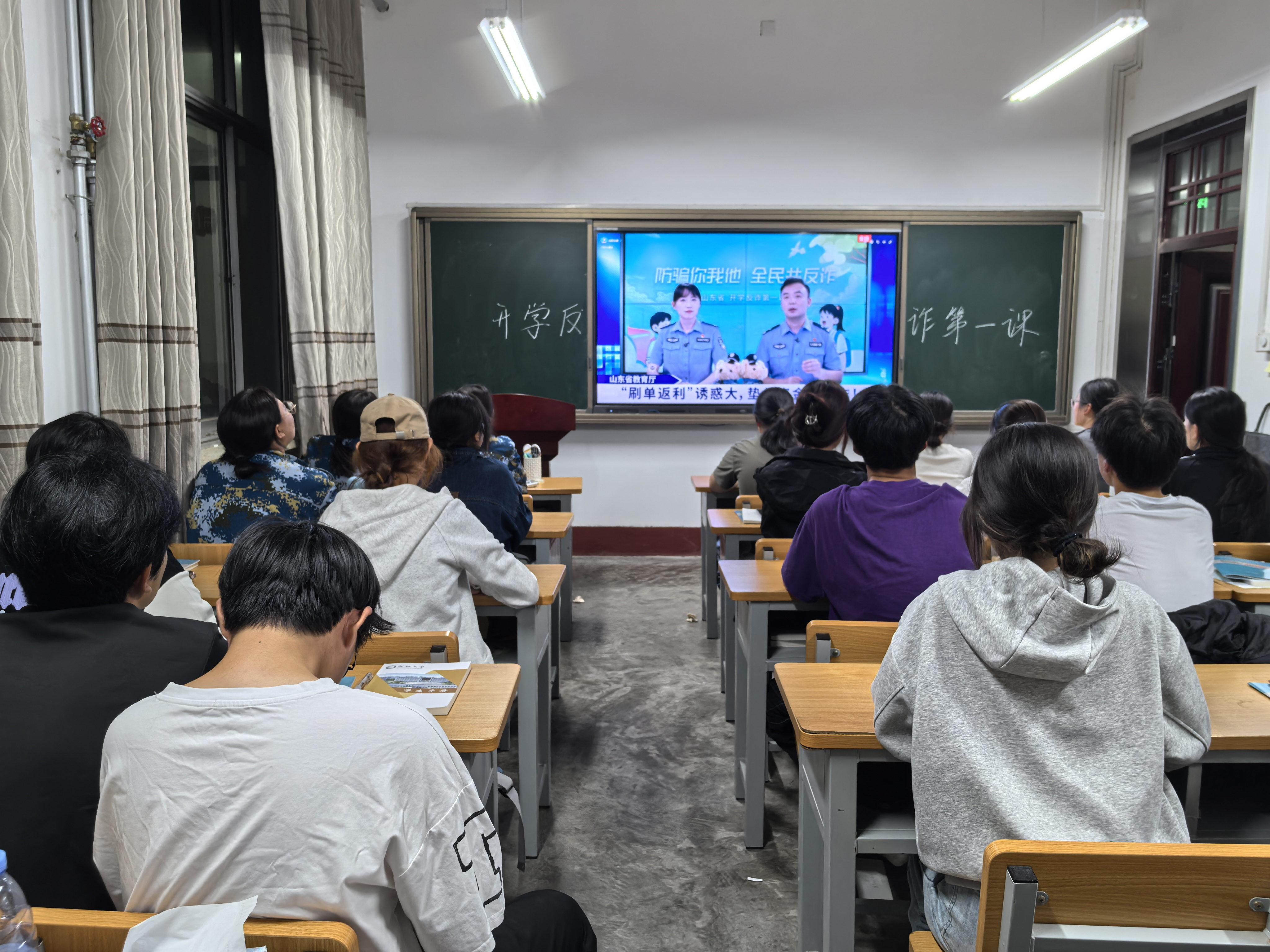 为进一步强化学生反诈意识,提升防骗能力,9月16日,73882必赢网页版组织学生收看由山东省公安厅、山东省教育厅、山东省人力资源和社会保障厅、共青团山东省委联合主办的“开学反诈第一课”之大学生常见骗局专场直播,并同步开展多形式反诈宣传活动。
