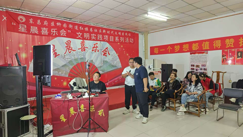 晚上七点,红旗巷社区活动室内已座无虚席。伴随着欢快的音乐,活动在居民舞蹈队带来的广场舞《文明花开幸福来》中拉开序幕。随后,老年合唱团演唱的《我和我的祖国》、社区戏曲爱好者表演的吕剧选段等节目轮番上演,台下观众掌声不断。