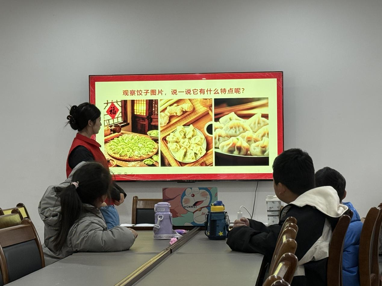 制作过程中,小朋友们兴致勃勃地揉捏、塑形、拼贴,精心设计专属于自己的“粘土饺子”,共同塑造出温馨的节日场景。志愿者们穿梭其间,耐心示范颜色调和、造型把握与层次处理的技巧,同时鼓励小朋友们充分发挥创意,融入个人巧思。在志愿者的协助下,小朋友们一步步完成塑形、装饰与场景布局,在指尖的流转间真切体验到传统节俗的生动趣味。